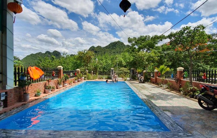 Built just two years ago, our homestay is slowly developing into one of the most popular homestays outside of downtown Phong Nha. Few other places have the perfect mix of location with mountains surrounding, and the true family aspect that we have. You do not have to skimp on quality in order to stay at a homestay and that is what we are here to prove. Our rooms are large with a private bathroom, and each has access to a shared balcony, a rooftop patio, and a large swimming pool. We also speak English and Vietnamese so check-in and booking your tours are a breeze!